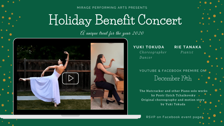 MIRAGE Performing Artsis a Twin-Cities based group of multidisciplinary performing artists who envision to enrich and enhance both cultures around Classical Music and Ballet. The group was co-founded by Rie Tanaka, Pianist and Yuki Tokuda, choreographer / Ballet dancer after their first collaborative production, “MIRAGE.” Their premier performance sold out tickets to all three shows, and received raving reviews from the audience, being featured on Star Tribune as one of “The Week’s Best Classical Concerts.”